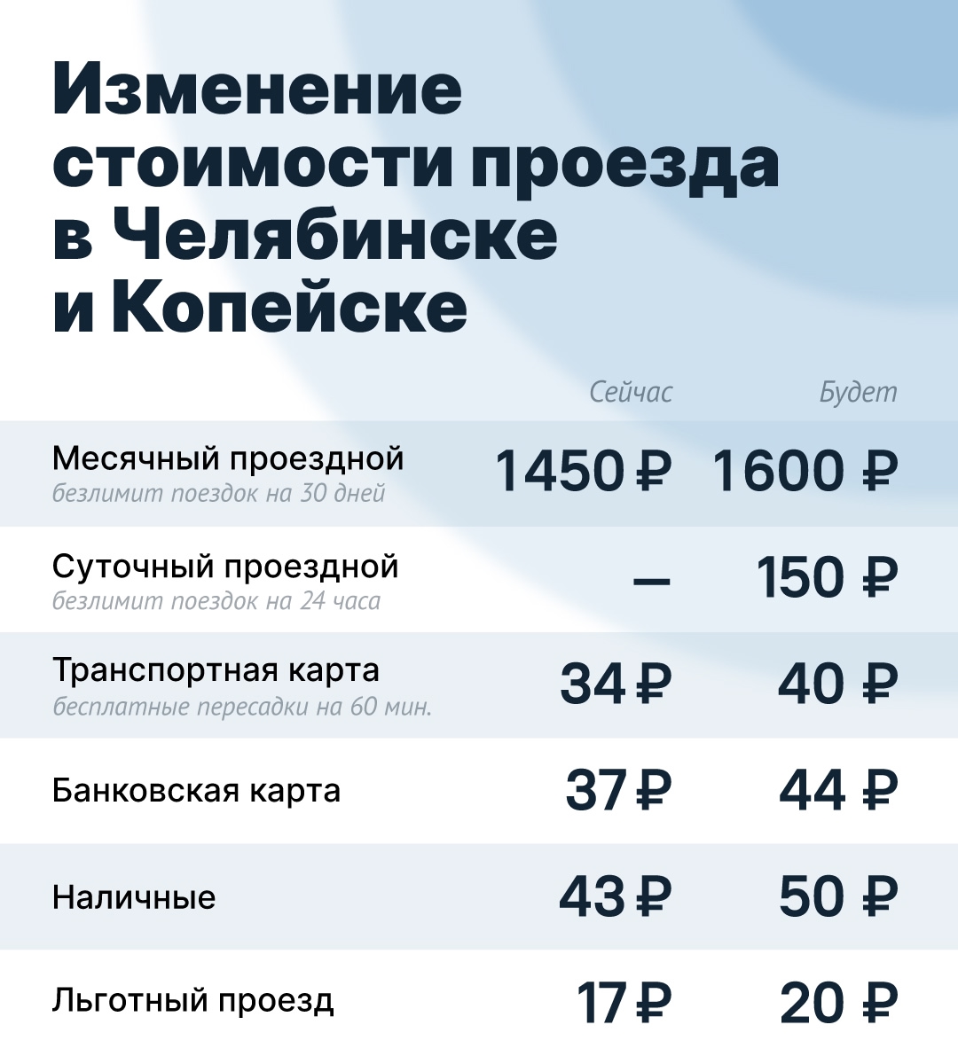 – Транспортная карта: 40 ₽ (было 34 ₽)